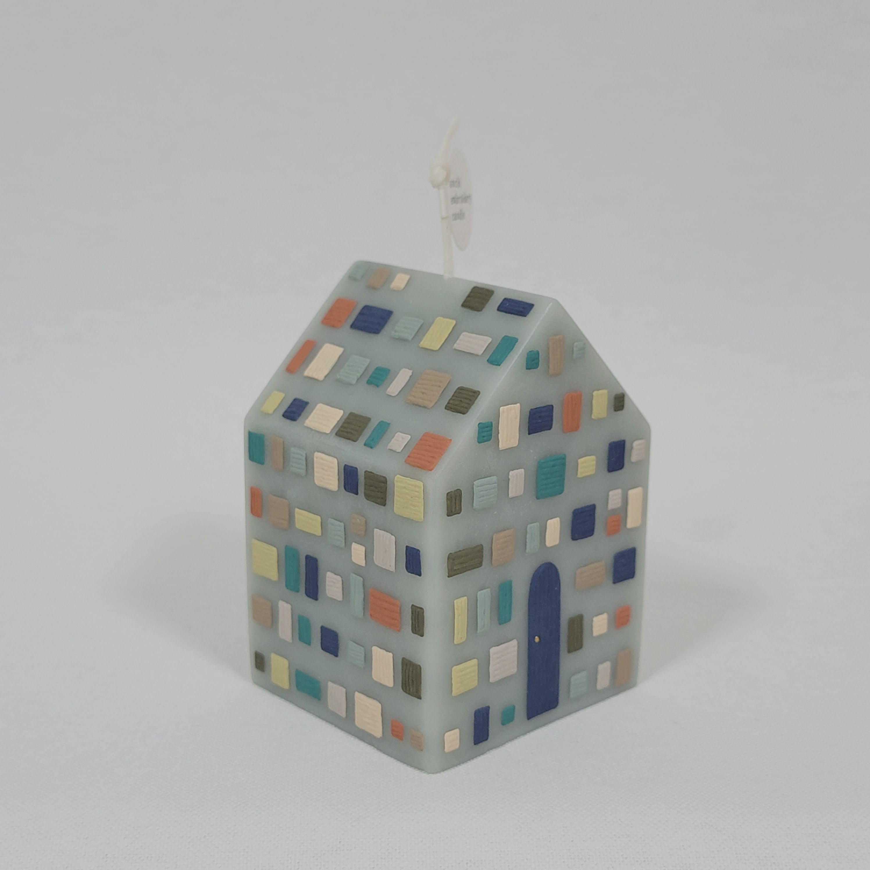 レンガのような、小窓のような小さな四角が並べられたデザインのキャンドルです。