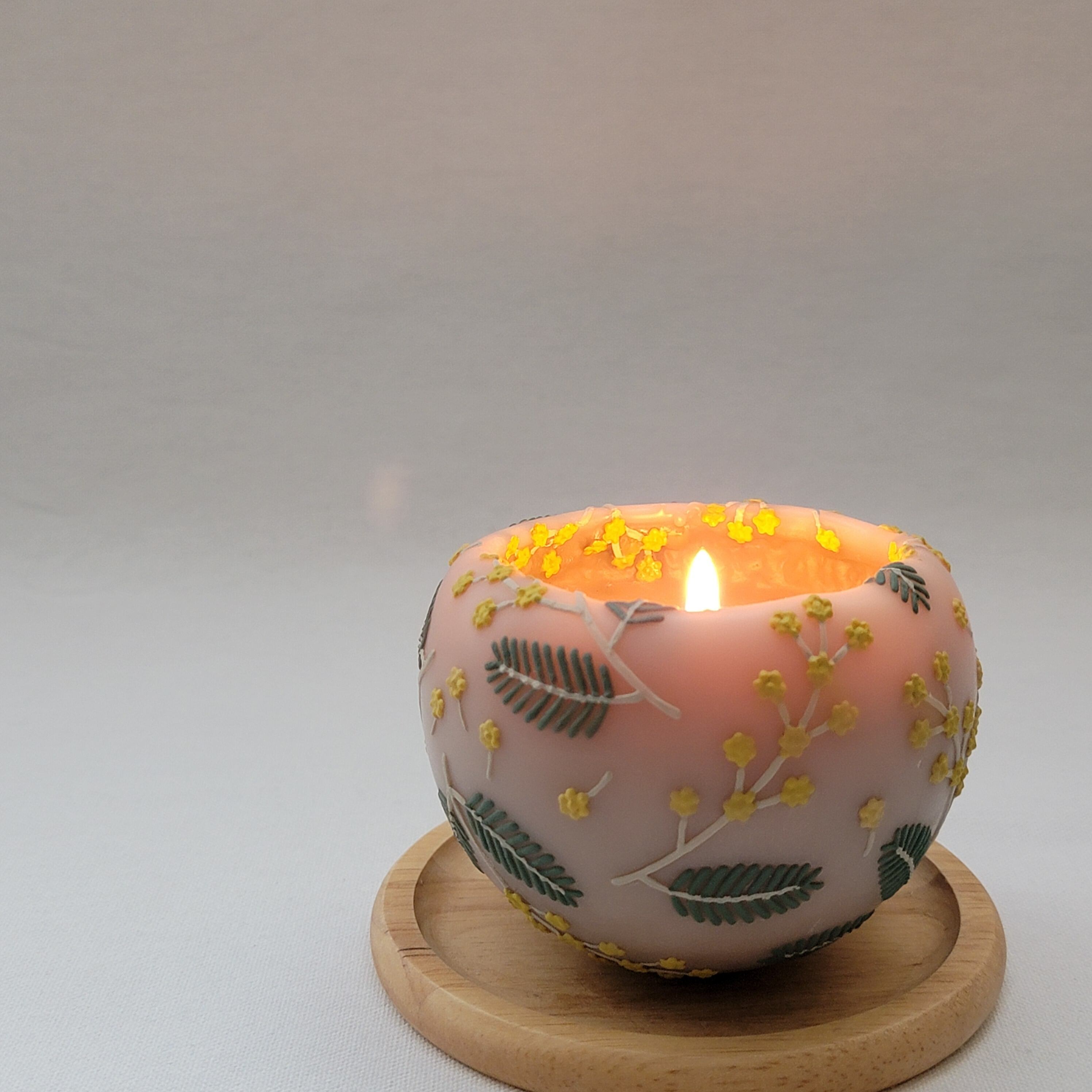 咲き誇るミモザをモチーフにした、球体のキャンドルです。