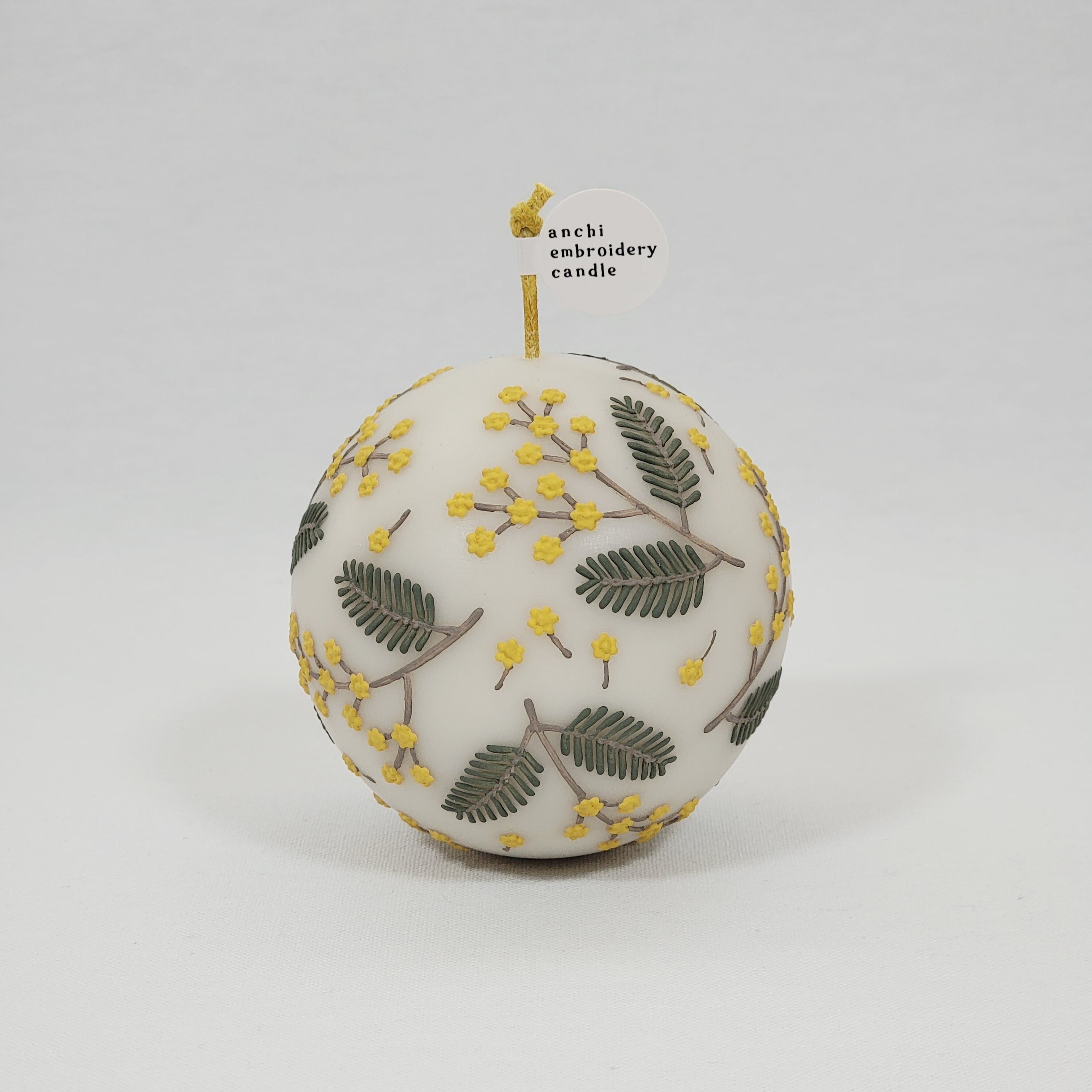 咲き誇るミモザをモチーフにした、球体のキャンドルです。