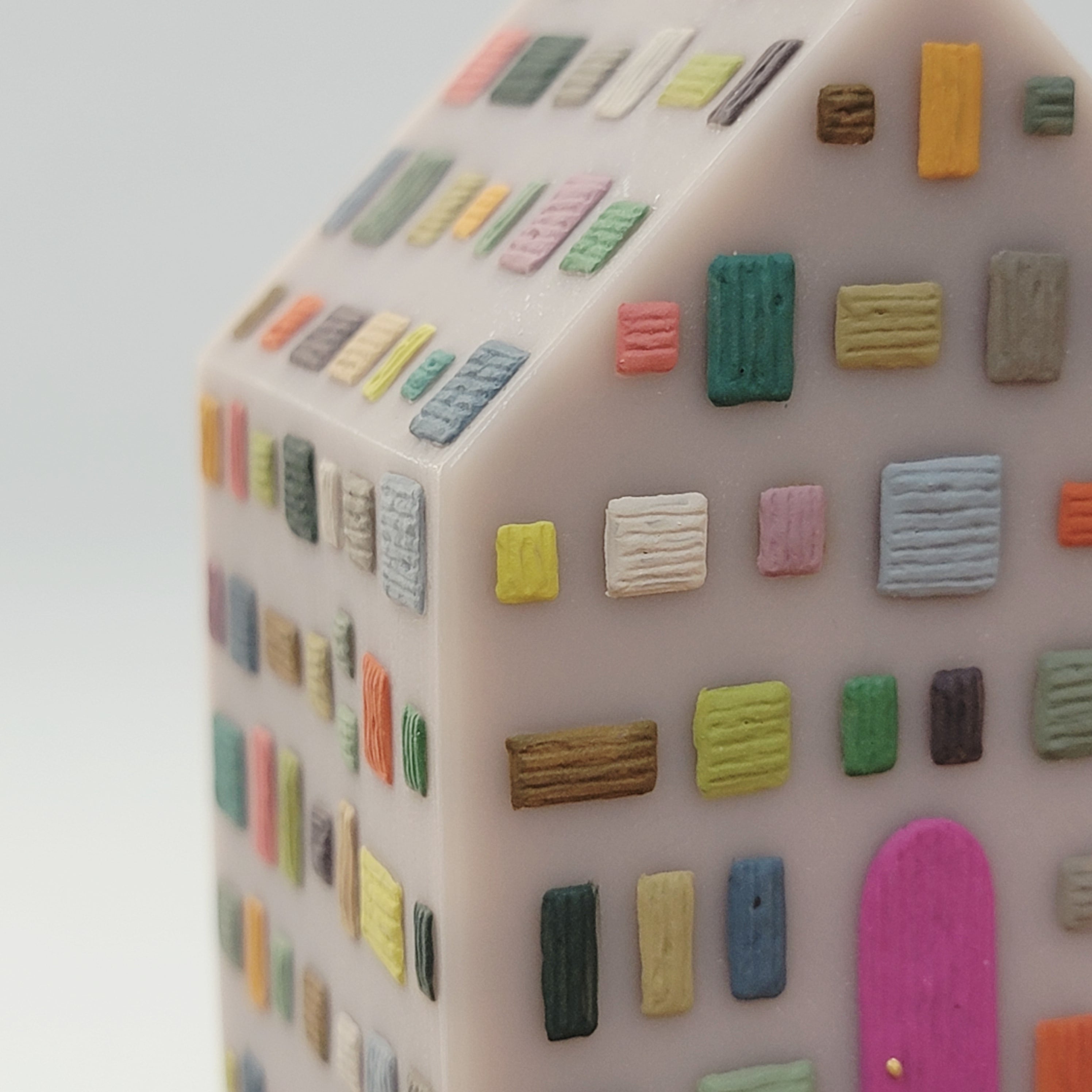 レンガのような、小窓のような小さな四角が並べられたデザインのキャンドルです。