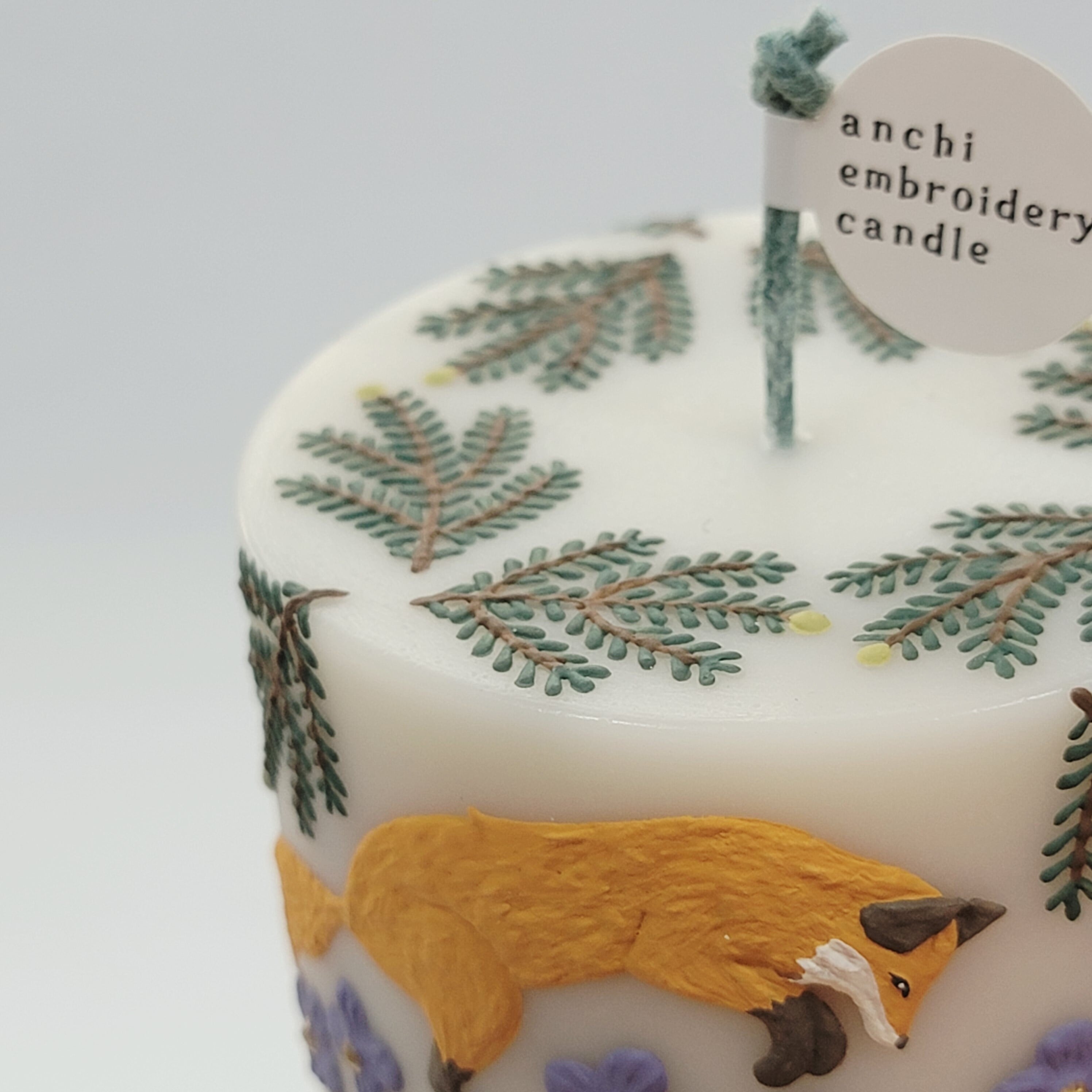 モミの木と愛らしいきつねのキャンドルです。