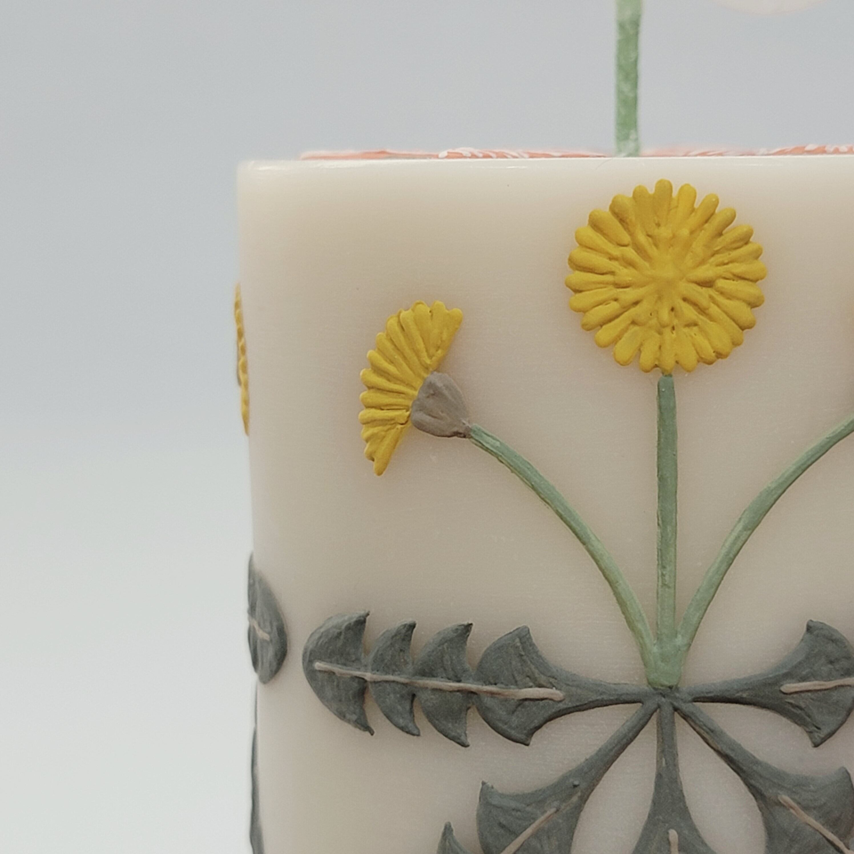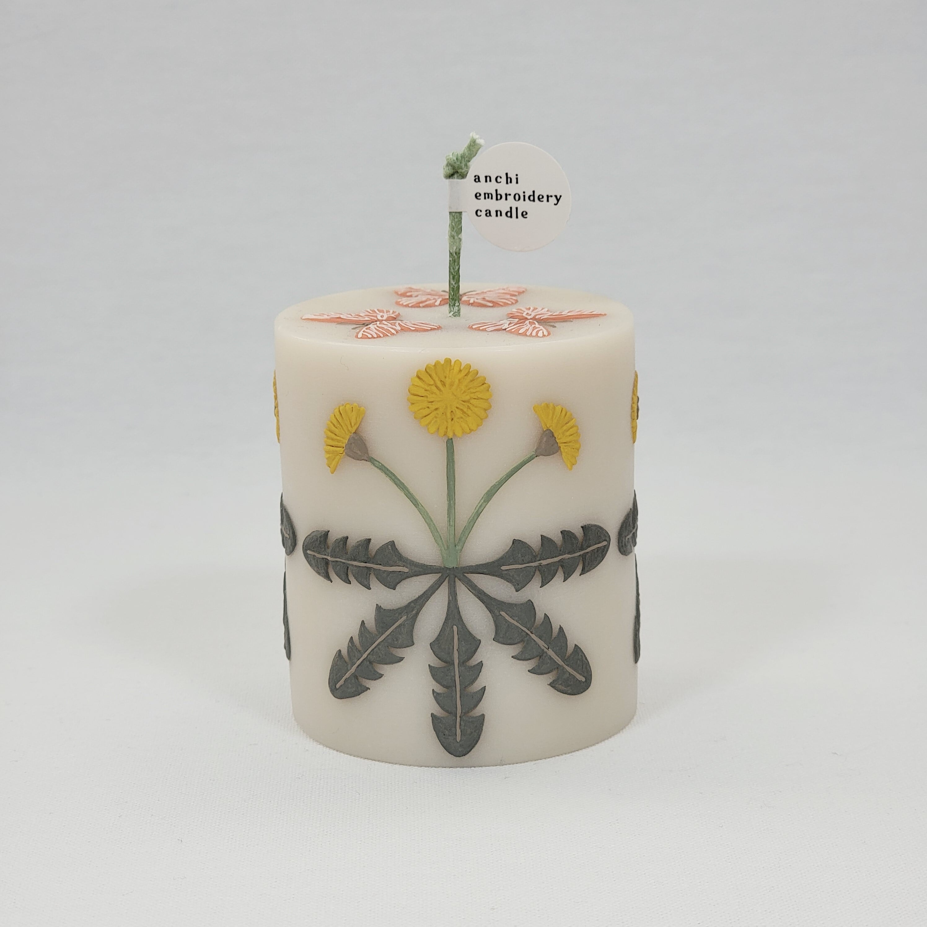可愛らしい蝶々が舞う、たんぽぽをモチーフにしたキャンドルです。