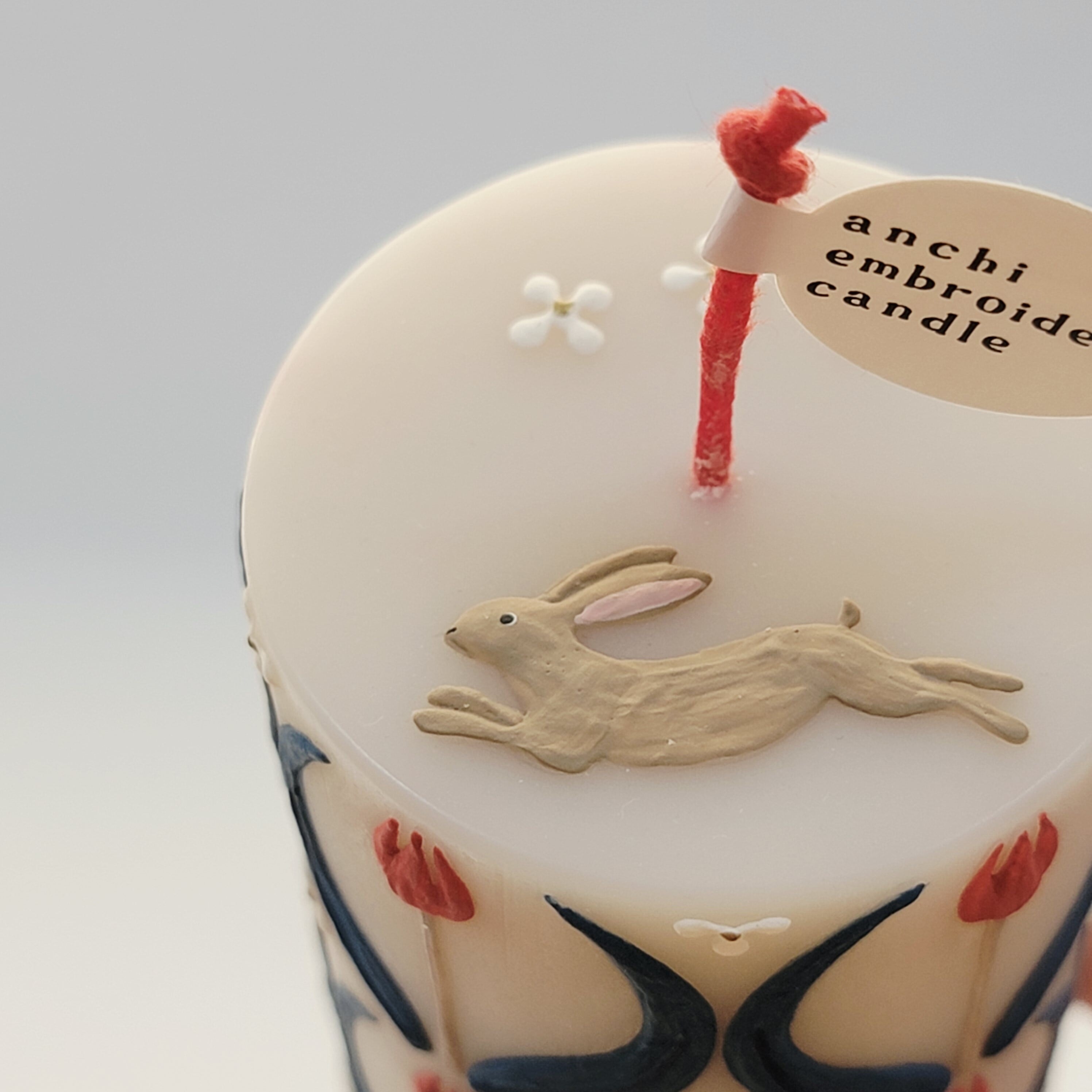 春の訪れを喜び、跳ぶうさぎがポイントです。